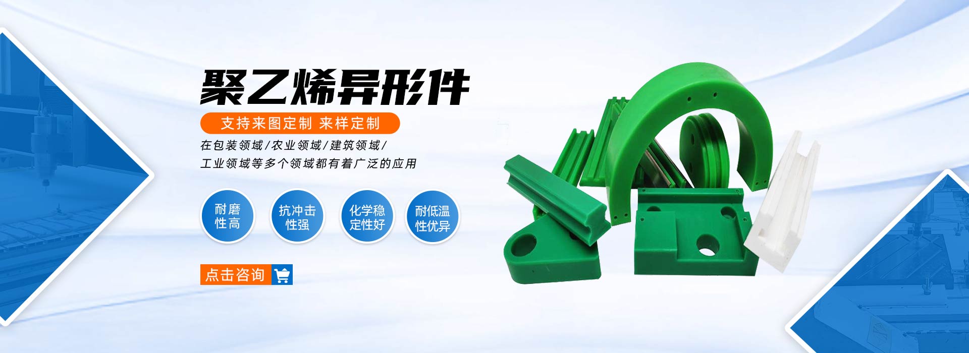 主要生產防滑鋪路板、仿真溜冰板、超高分子量聚乙烯板內襯、塑料托輥、聚乙烯砧板;異形件、支腿墊塊、防輻射板等超高分子量聚乙烯改性制品